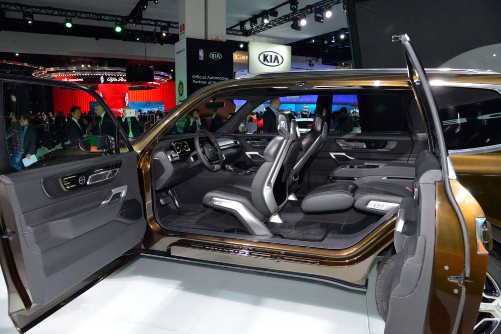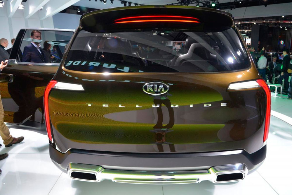 Прототип со сложным для европейцев названием Telluride и золотистой окраской – намек на самый большой внедорожник марки Kia, который вскоре станет наследником модели Mohave. Идея брутального вместительного автомобиля должна прийтись по вкусу зажиточным американцам из «рабочих» штатов. Telluride – название шахтерского города в Колорадо, где добывают золото. Технические характеристики будущей машины держатся в тайне. Известно лишь, что некоторые компоненты интерьера, например, части дверных панелей, центральной консоли и рулевого колеса были изготовлены при помощи 3D-принтера. Приборная панель будет электронной, кнопки на руле сенсорными. Стиль машины разработан калифорнийской дизайн-студией компании, и его впоследствии могут взять за основу при дальнейшем развитии модельного ряда корейского бренда.