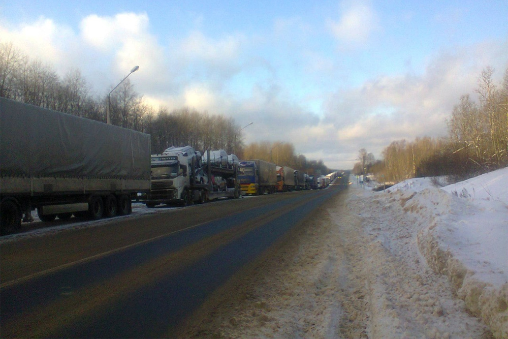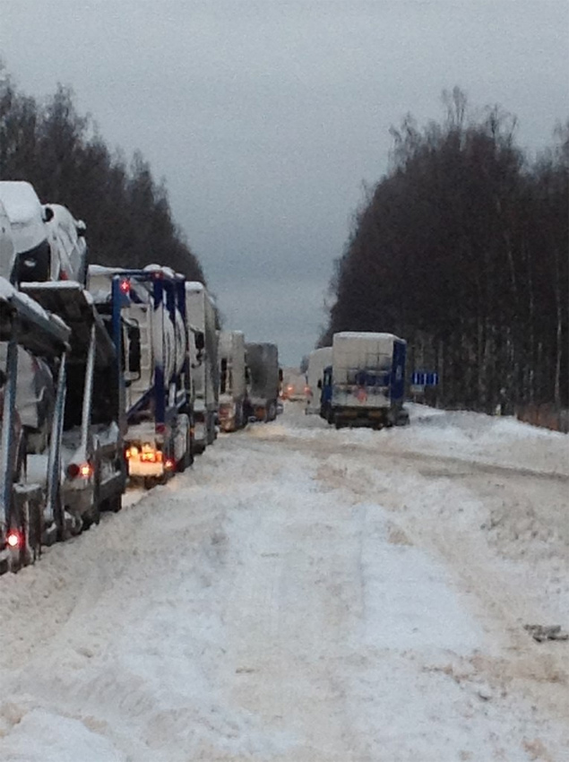 Многокилометровая пробка на трассе "Россия"