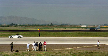 В прошлую субботу в штате Аризона прошло весьма необычное соревнование между двумя Viper в рамках авиашоу Luke Days Air Show. Один из участников – автомобиль Dodge Viper SRT-10, другой – маленький истребитель американских ВВС Martin F-16 "Viper". Автомобиль и самолет двигались по параллельным взлетным полосам на военном аэродроме в штате Аризона; расстояние, которое им нужно было преодолеть – 800 метров. Dodge Viper смог дойти до финиша первым за 18 секунд, передает CanadianDriver.