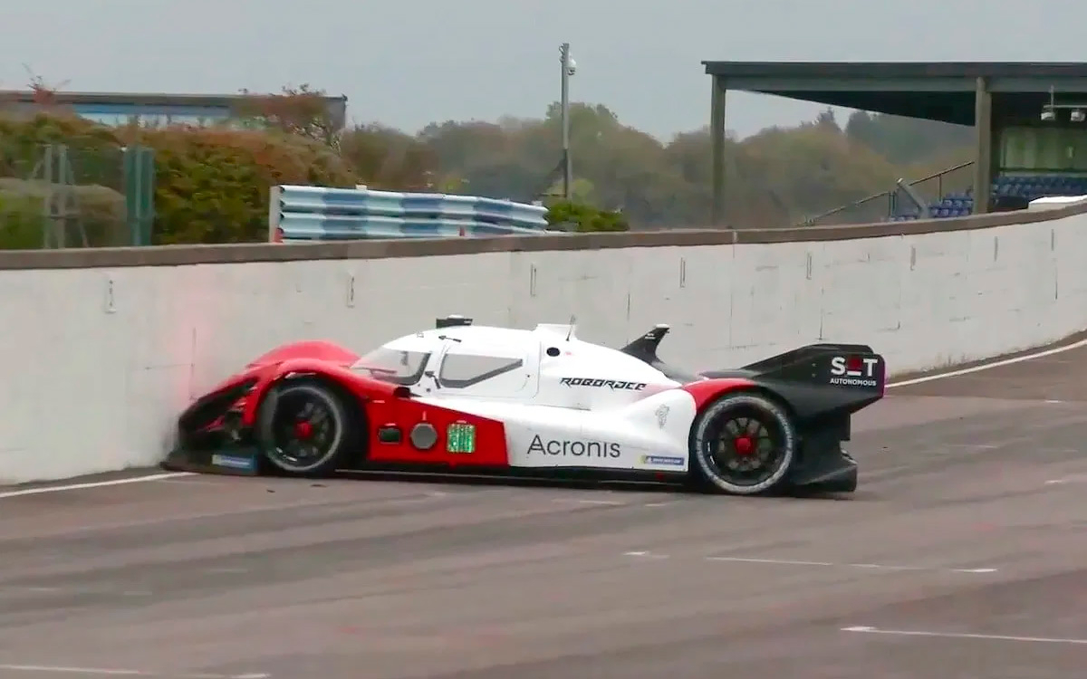 Во время гоночных соревнований беспилотных автомобилей Roborace болид швейцарской команды SIT Acronis врезался в стену сразу после начала заезда. Видеозапись аварии выложили на YouTube-канале ThatOneFormula. На записи видно, как беспилотный гоночный болид сразу после старта резко свернул направо и протаранил ограждение. Как сообщает Business Insider, причиной инцидента, скорее всего, стал сбой в программном обеспечении.